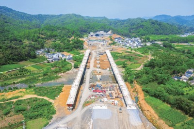 昌景黄铁路联系皖赣两省,是国家铁路中长期规划的重点铁路项目,并正式列入国家区域性高铁路网发展规划,正线全长286公里,其中安徽省境内89.6公里。建成后,黄山至景德镇将实现半个多小时通达,对完善区域快速路网布局,形成赣中地区至长三角地区的快速通道具有积极意义。(郎成涛 杨胜利 摄)
