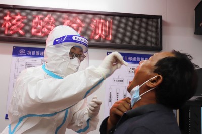 8月29日,中铁四局一公司广(州)佛(山)出口放射线二期(南海段)项目党支部组织全员进行核酸检测,共有72人参与检测,包括项目管理人员、探亲家属以及劳务分包单位等所有一线人员。(陈笑 摄)
