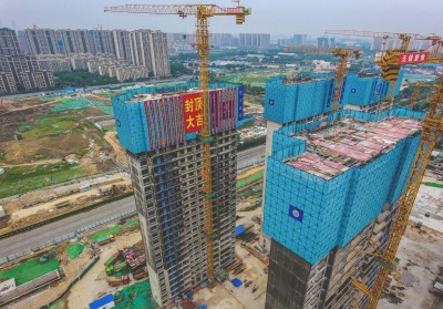本报无锡讯 8月20日,中铁四局建筑公司施工的无锡望愉地铁建设项目A地块首栋主体结构封顶。
