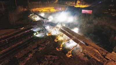 中铁四局二公司承建的京沪高速改扩建JHK-JD1标起于高邮市卸甲镇,终于江都区丁伙镇,线路全长11.476公里。标段内设计拆除桥梁四座,拆除工程量较大,本次拆除的是其中两座。 (王磊 袁艳军 摄)
