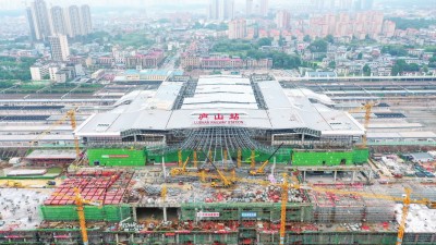 庐山站扩建改造,站房建筑面积扩大15倍,由原来的4千平方米扩建为近6万平方米,站场规模为8台25线,为全国第二例采用上进上出式结构的高铁站,是目前江西境内规模最大、难度最高的高铁站房,也是目前国内施工工况最复杂的站改工程之—。(董志奕 余红星)