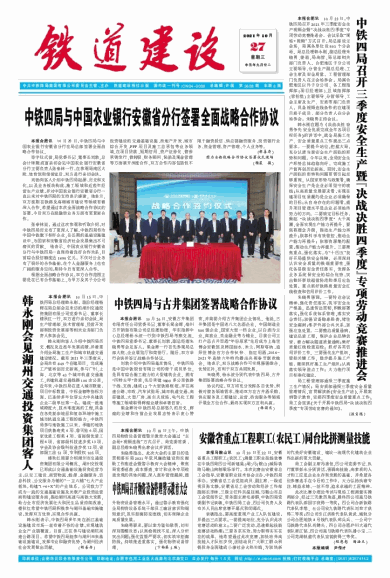 中铁四局与中国农业银行安徽省分行签署全面战略合作协议