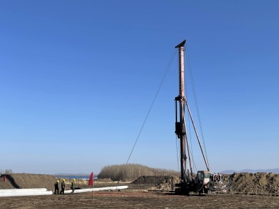本报铁力讯 11月2日,由中铁四局二公司承建的铁(力)伊(春)铁路二标铁力制梁场首根管桩开始施工。