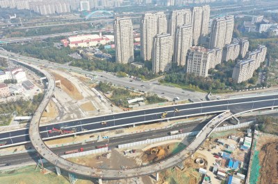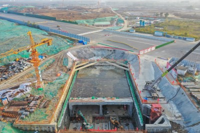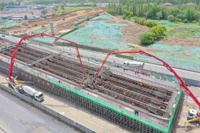 目前,工程施工正有序推进。其中,十五里河钢构桥架设完成,繁华大道互通立交桥北段沥青摊铺结束,管幕施工已完成全部钢管幕顶进及首节隧道箱涵全部进洞。