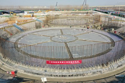 该项目二沉池分1号、2号两个处理单元,本次浇筑的为2号二沉池,共浇筑混凝土617方。生物池分为两个系列六个区,本次浇筑的底板为第6区,共浇筑混凝土817方。(何定华)