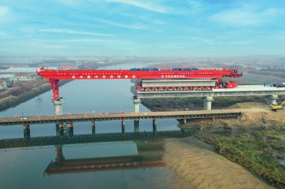 12月17日,随着跨乳山河特大桥首榀箱梁架设完成,中铁四局七分公司莱(西)荣(成) 铁路ZQSG-2项目部开始第二阶段箱梁架设,累计架设完成箱梁107榀,率先突破架梁百榀大关。