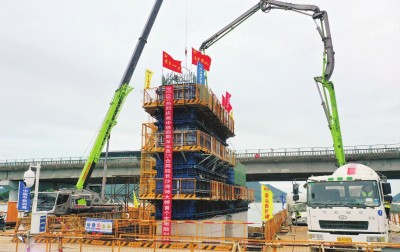 本报汕尾讯 2月8日,中铁四局五公司深汕西高速改扩建工程长沙湾特大桥右幅12号主墩浇筑完成。