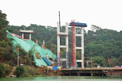 五公司承建的上林至横县高速公路6标管段长5.287公里,包含特大桥、主线路基、服务区、互通枢纽等施工内容。其中西津郁江特大桥为全线控制性工程,全桥长1190米,主桥上部结构为51+89+400+89+51米双塔双索面混合梁斜桥,主桥400米主跨跨越郁江主通航孔。