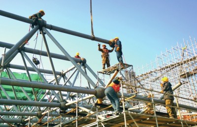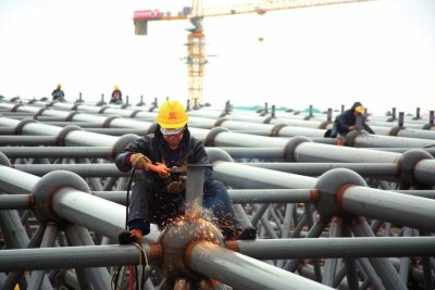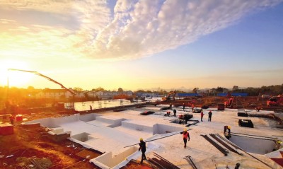 春勤人更早,瓷都大干忙。3月7日,景德镇国际陶瓷博览交易中心项目土建结构部分全面收尾,开始序厅屋面网架梁首吊,现场大干高潮迭起,快速实现了复工满产。