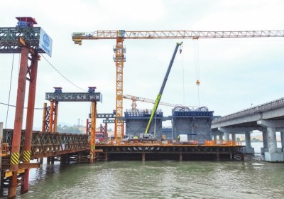 深汕西高速改扩建全长约146公里,是目前广东省投资规模最大、里程最长的高速公路改扩建项目,全线按照双向8车道高速公路标准改扩建。长沙湾跨海特大桥为深汕西改扩建全线控制性工程,全长2108米,主跨采用(47.5+2×83+47.5)米预应力混凝土连续刚构悬浇施工,共设置主墩3个。 (刘长魁)