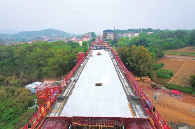3月21日17时,中铁四局七分公司承建的崇(左)凭(祥)铁路1标岭弄双线特大桥预应力渡线连续梁完成首跨浇筑。其作为在建崇左南站引入工程的重要组成部分,将为2022年南崇铁路顺利开通提供重要保障。